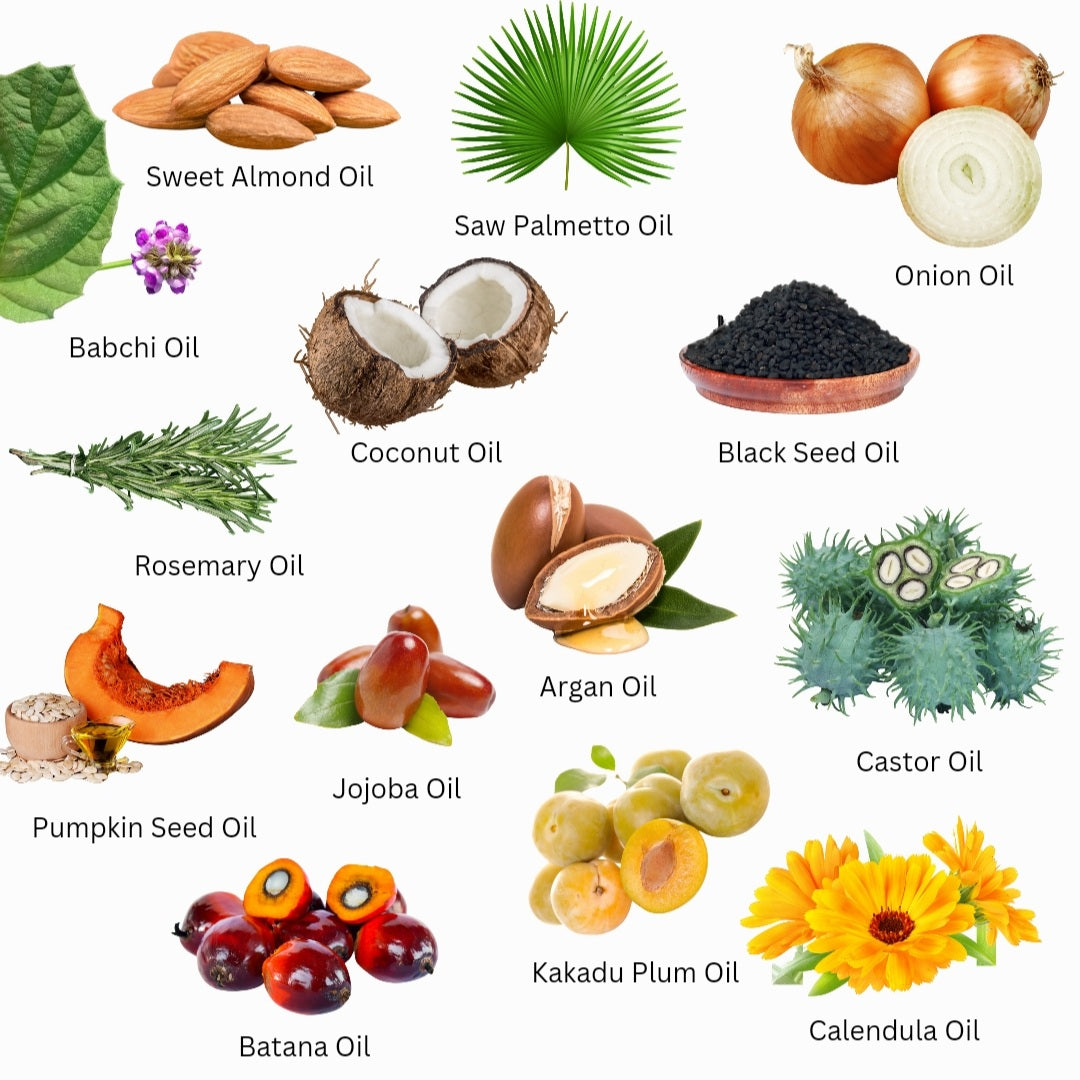 - Babchi Oil: Reduces scalp inflammation, aiding in hair regrowth.